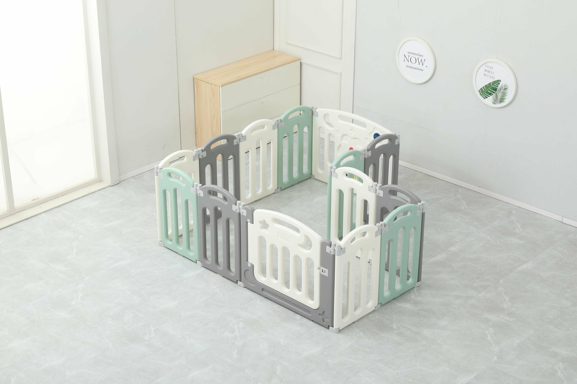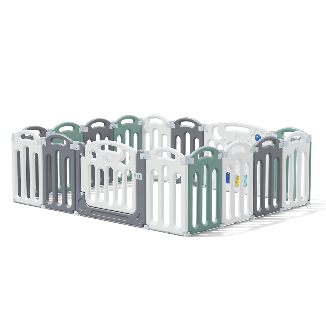 Манеж UNIX Kids "Simple" Color, серый/белый/зеленый, 188x151 см, большой детский игровой манеж из пластика, игровой комплекс, для дома, для улицы интересное: