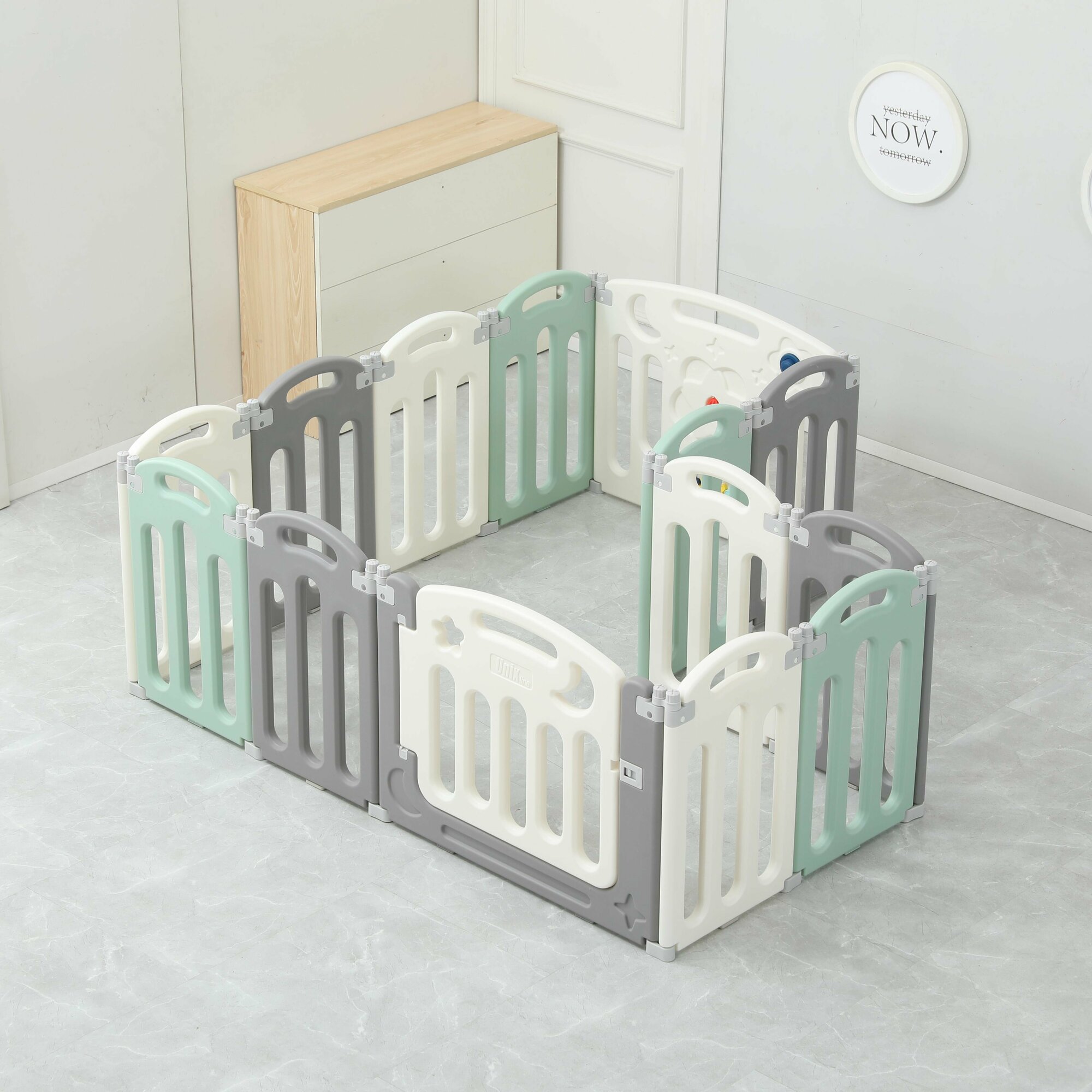 Манеж UNIX Kids "Simple" Color, серый/белый/зеленый, 188x188 см, комплекс для дома, для улицы, вольер для собак, щенков