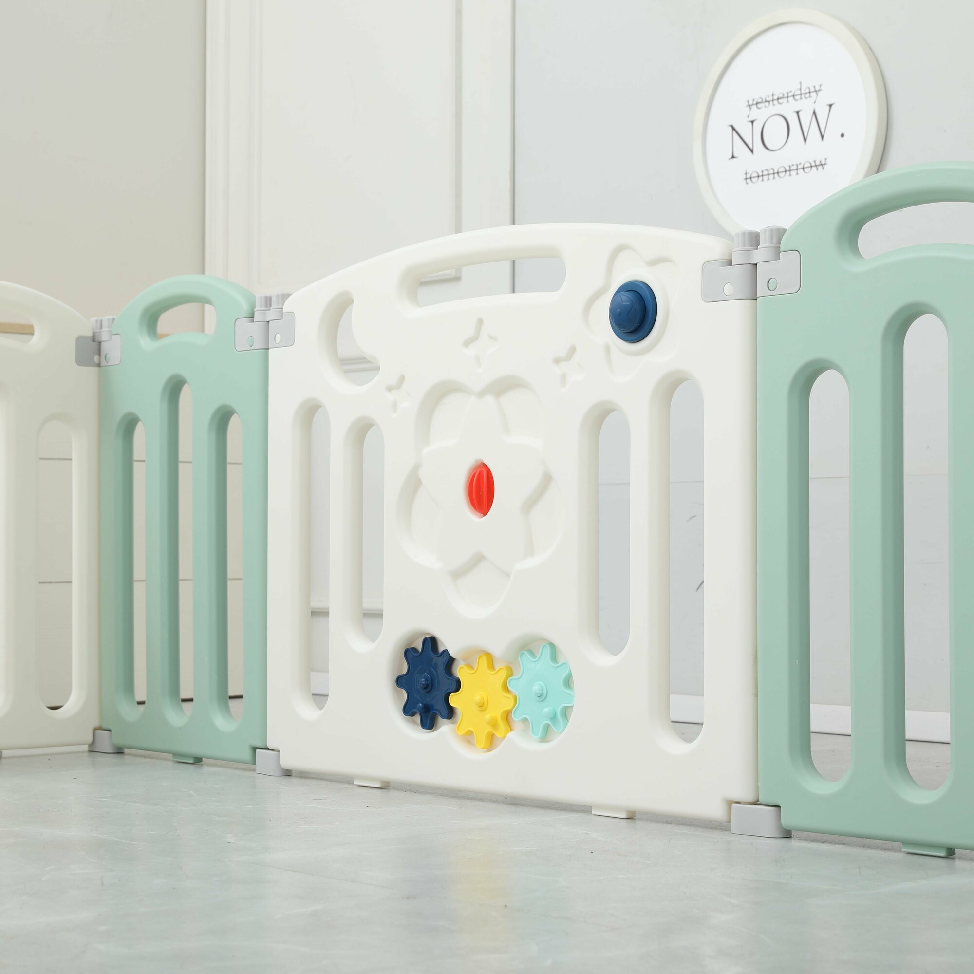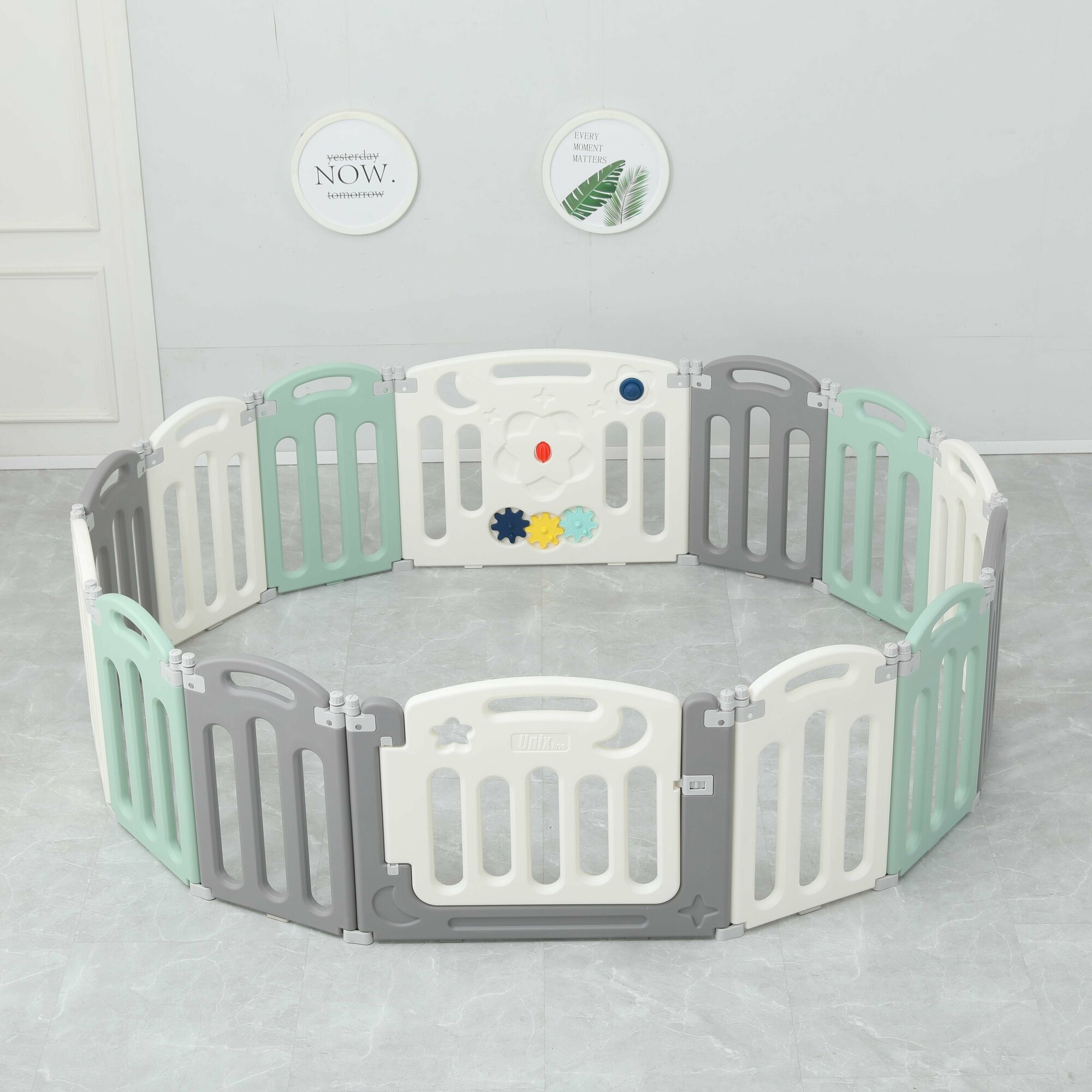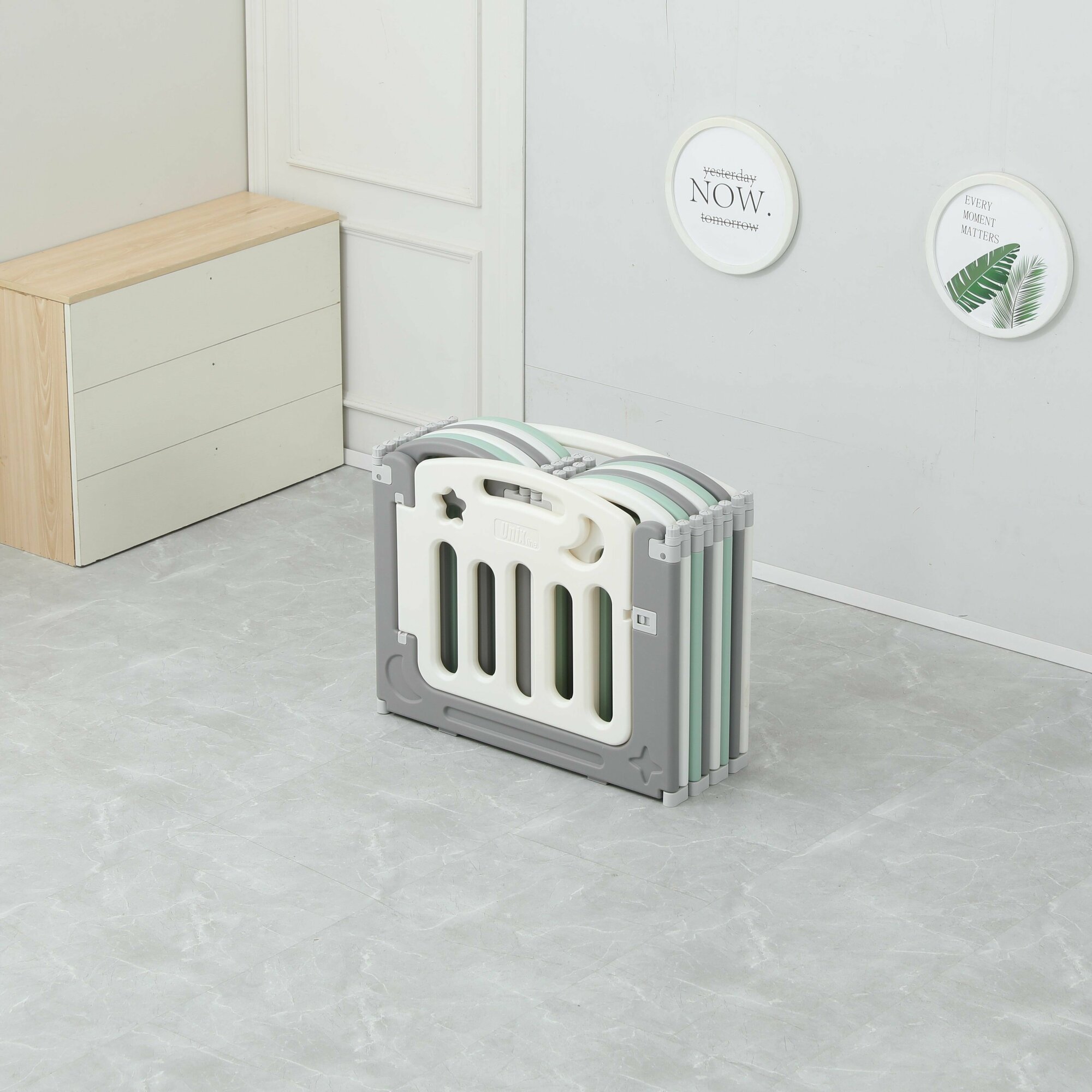 Манеж UNIX Kids Simple, для дома и улицы, бизиборд, от 0 месяцев, складной, белый/серый/зеленый, 151x151 см