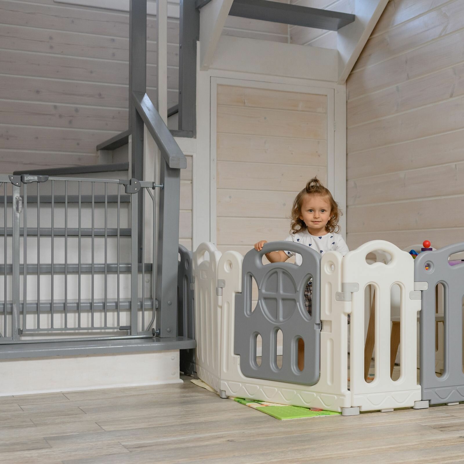 Купить Манеж UNIX Kids "Classic" Grey, серый/белый, 160x120 см, большой детский игровой манеж из пластика с ковриком для дома и улицы