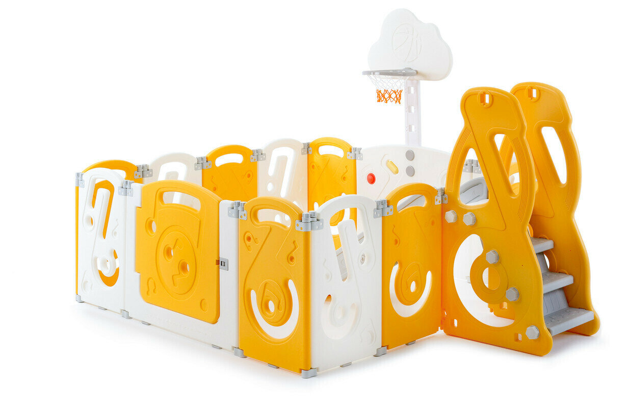 Манеж UNIX Kids "SUPREME Music" Yellow, желтый/белый, 200x240 см, Yellow, с ковриком, горкой и баскетбольным кольцом для дома и улицы интересное: