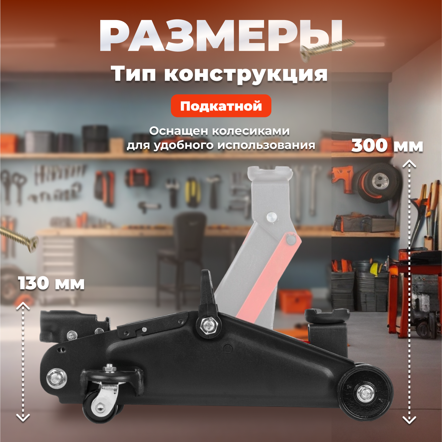 Домкрат подкатной 2т, в кейсе, 130-320 мм