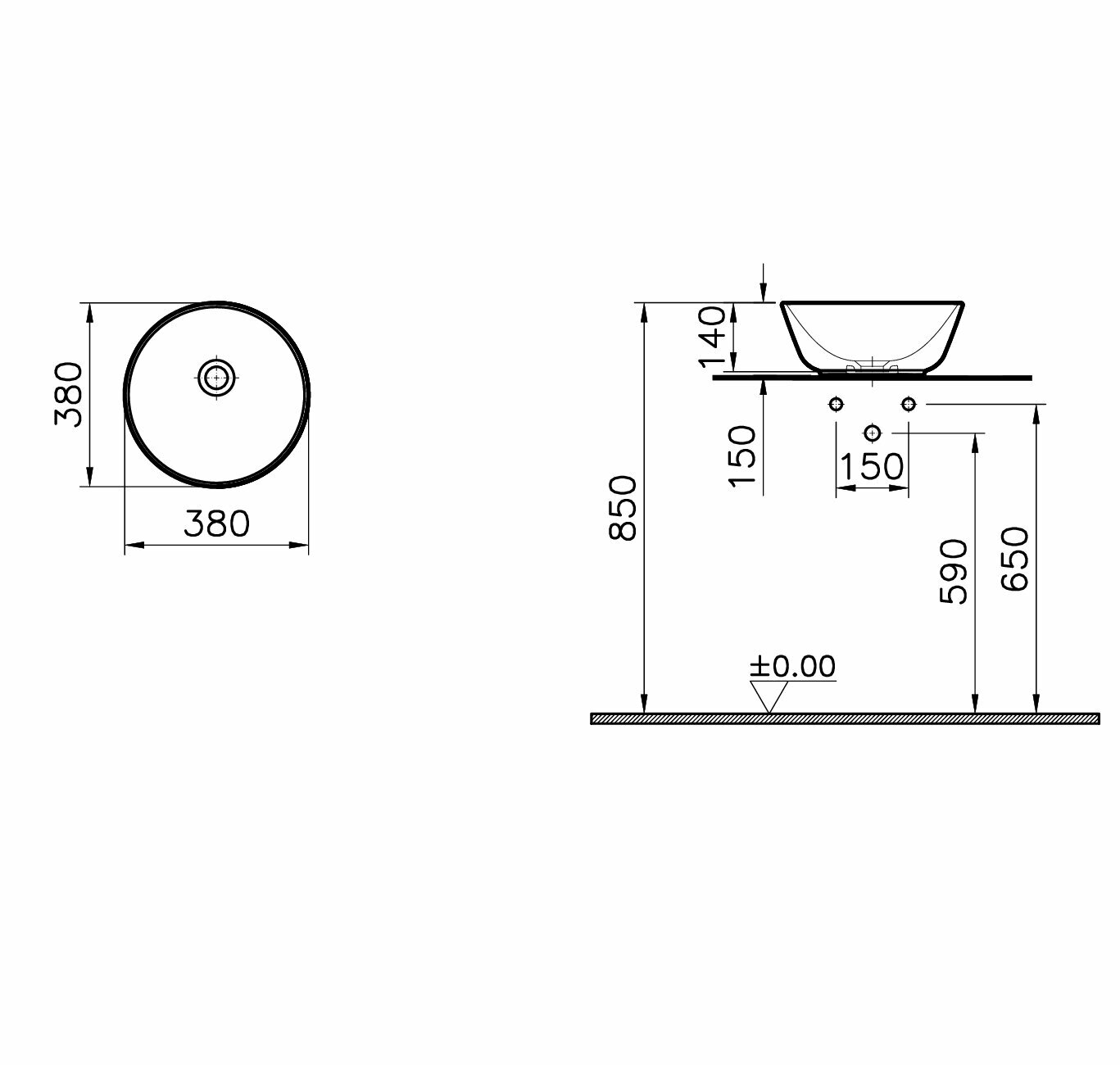 Раковина накладная Vitra Geo (380х380х143)без перелива, без отв. под смеситель, белый 7421B003-0016