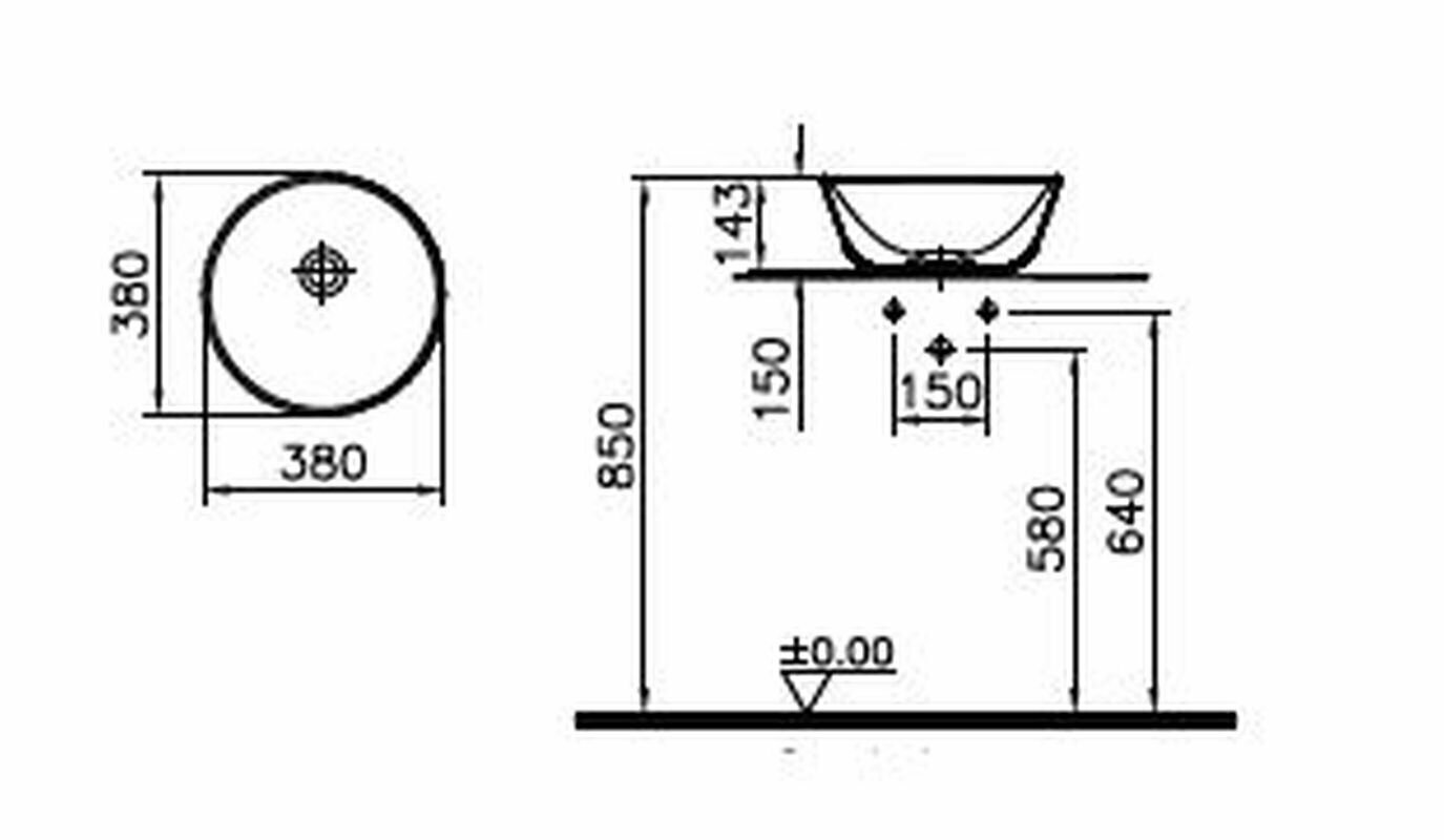 Раковина Vitra Geo (380х380х143) накладная,без перелива,без отв. под смес.,антиб. покр.7421B003-0016