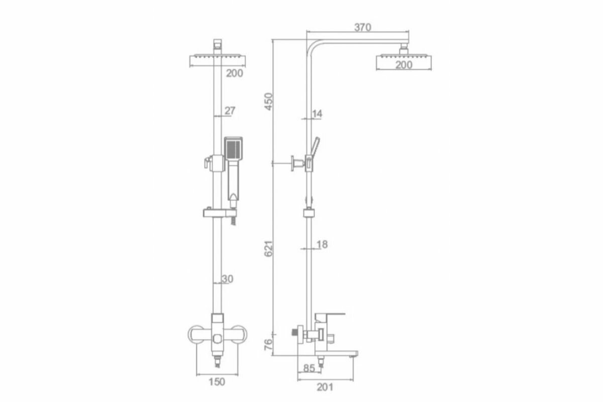 | Комплектация | Смеситель / душевая стойка / верхний душ / душевая лейка / душевой шланг / держатель для душевой лейки / настенный держатель / отражатели / эксцентрики |