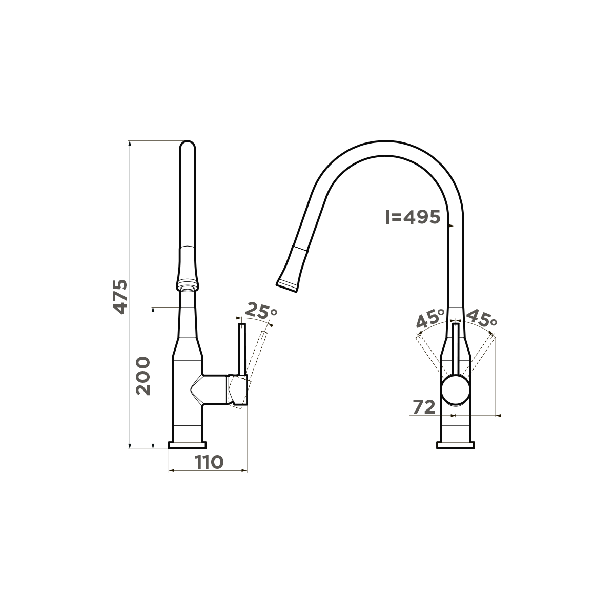 Смеситель для кухни OMOIKIRI Yatomi-BN-GR с гибким изливом/Нержавеющая сталь
