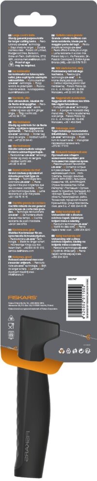 | Дополнительная информация | рукоятка с покрытием Softouch, рекомендуется заточка с помощью точилки Fiskars Roll-Sharp или точильного камня с углом 30+/-4 |