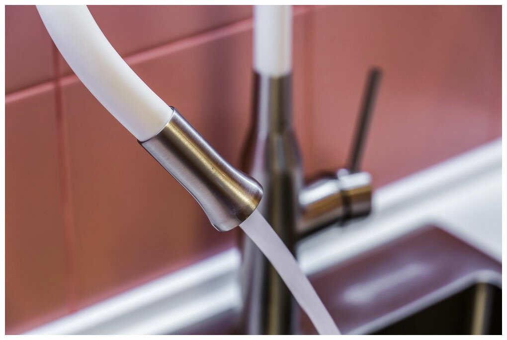 Смеситель OMOIKIRI Yatomi-BN-WH для кухни латунь/нерж. сталь/белый шланг