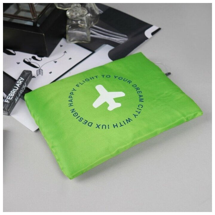 Сумка дорожная на молнии, складная в косметичку, наружный карман, держатель для чемодана, цвет серый/зелёный