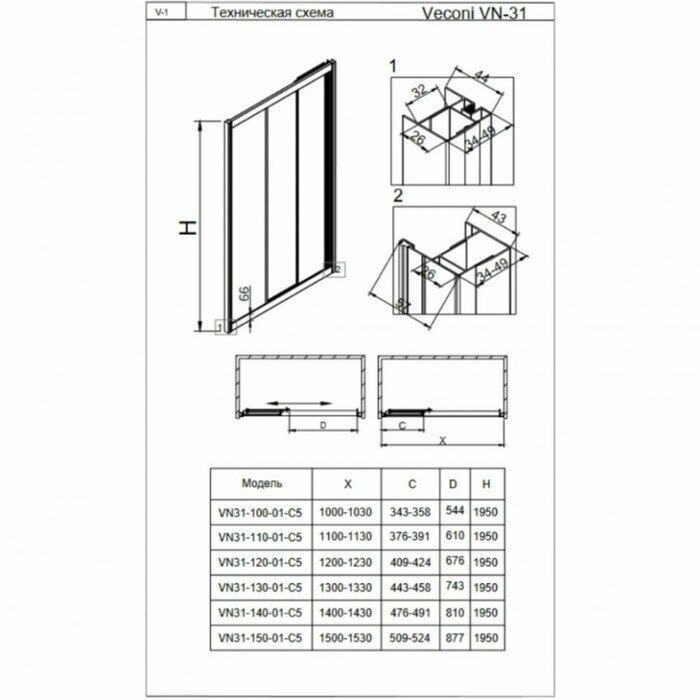 Душевая дверь Veconi Vianno раздвижная VN-31 (110 см, прозрачное VN31-110-01-C5)