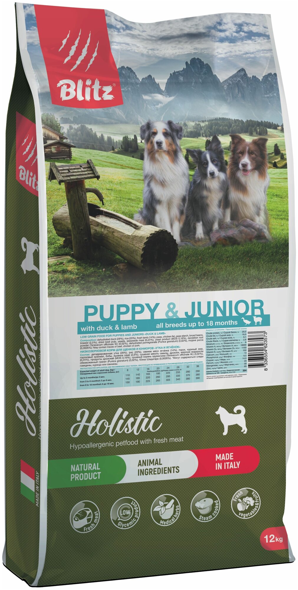 Сухой корм BLITZ HOLISTIC LOW-GRAIN PUPPY & JUNIOR DUCK & LAMB низкозерновой для щенков всех пород с уткой и ягненком (12 кг)