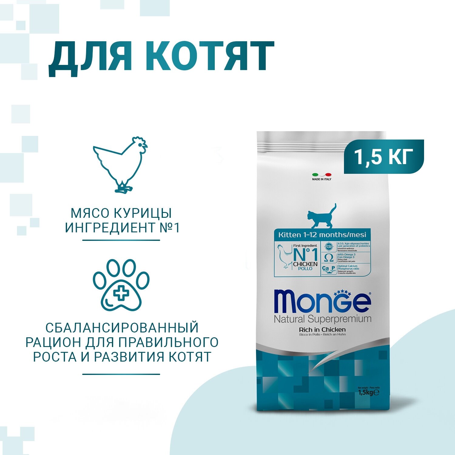 Сухой корм для котят Monge Natural Superpremium, с курицей 1.5 кг