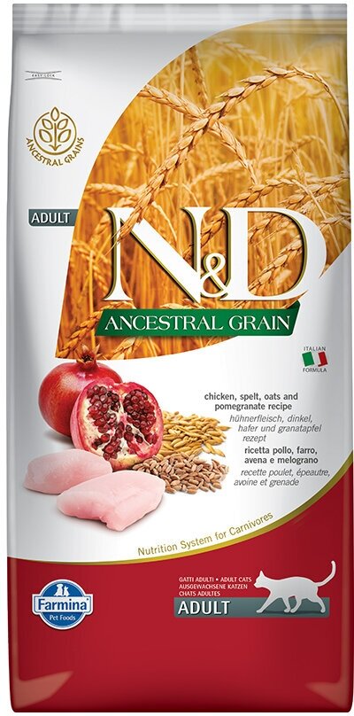 Корм для кошек сухой N&D Ancestral Grain / Фармина Cat Chicken & Pomegranate Adult низкозерновой для взрослых животных всех пород, гранулы с курицей