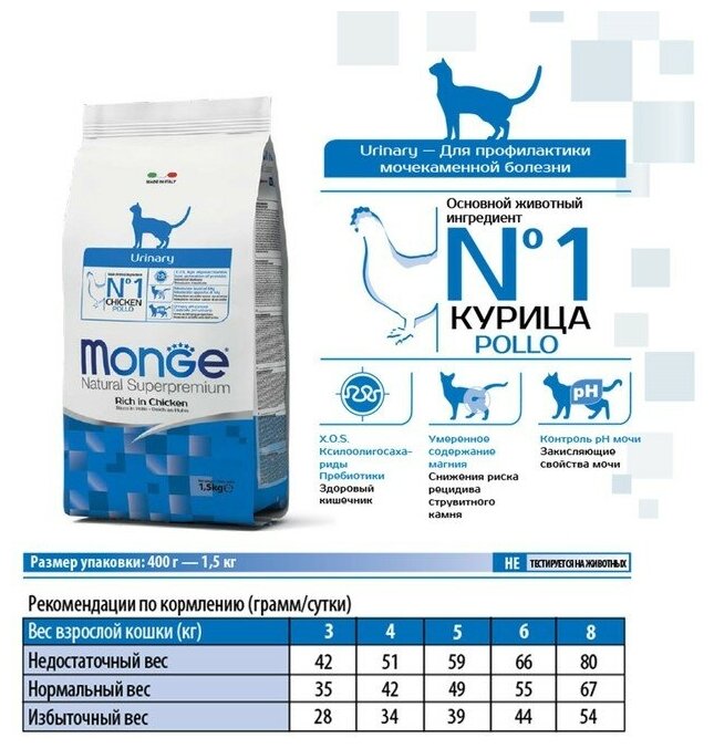 Ниже Вы можете прочитать отзывы на Сухой корм Monge Cat Urinary для кошек профилактика МКБ 1.5 кг, ознакомится с подробными характеристиками, посмотреть интересные обзоры и фотографии на Сухой корм Monge Cat Urinary для кошек профилактика МКБ 1.5 кг.