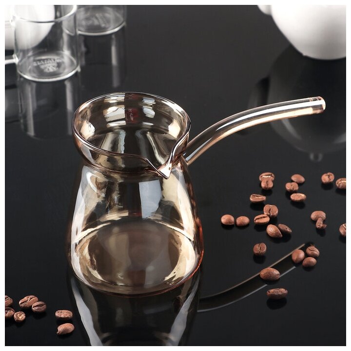 Турка стеклянная «Арабика», 300 мл, 19×9,5×10 см, цвет золотой (1 шт.)