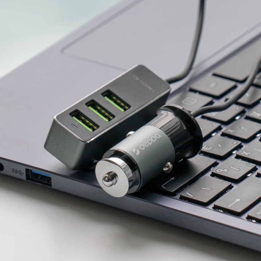 Купить АЗУ 1 USB + 3 USB для пассажиров, QC 3.0, 7А, алюминий, графит, Deppa 11295