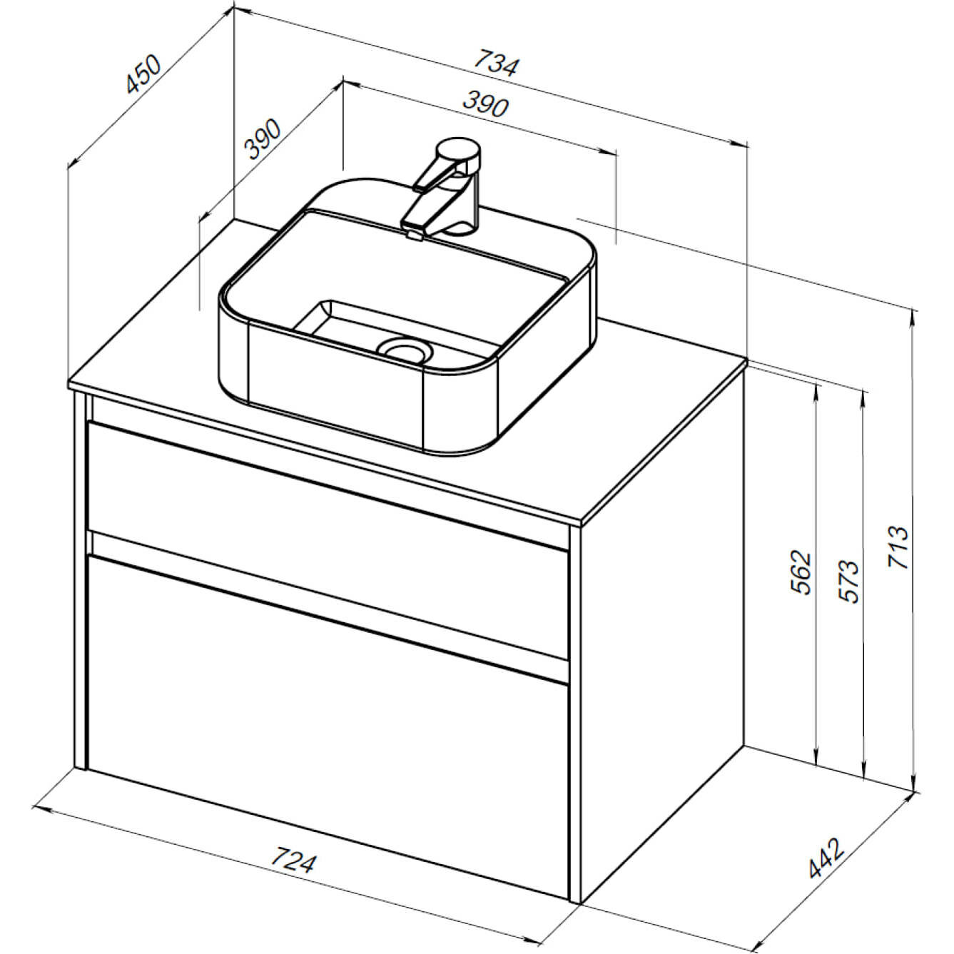 | Комплектация | тумба под раковину, 2 выдвижных ящика; раковина в комплект не входит |