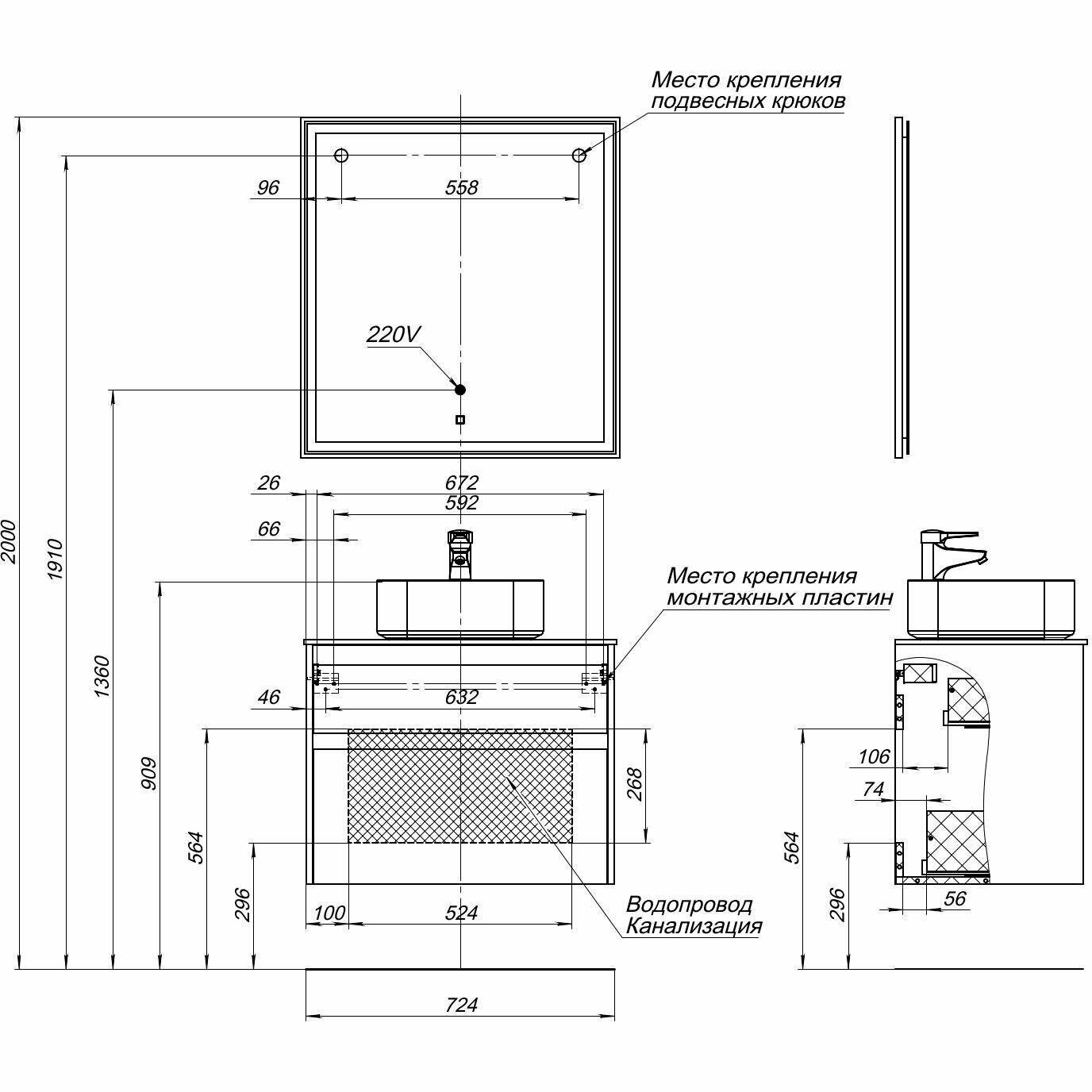 | Минусы: | В столешнице есть ПРЯМОУГОЛЬНОЕ отверстие под раковину. Пришлось скруглять его для нашей раковины |
