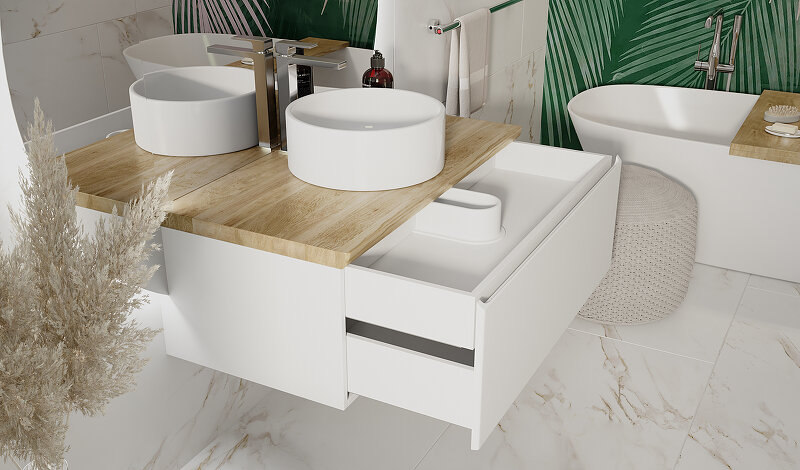 Подвесная тумба под раковину Jorno Solis 100, со столешницей, цвет белый