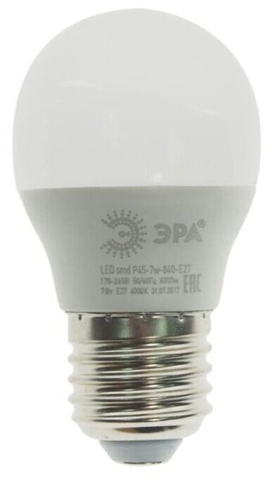 ЭРА Лампа светодиодная E27 7Вт ЭРА F-LED P45-7w-840-E27 frozed интересное:
