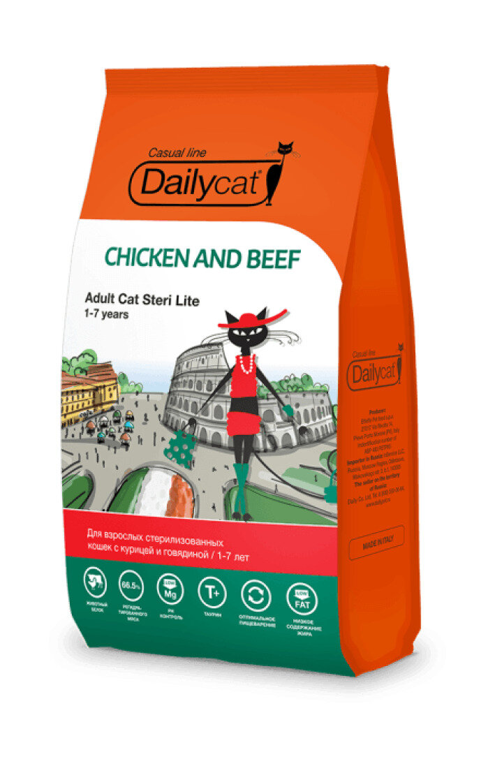 Dailycat Dailyсat Casual Line Adult Steri lite Chicken and Beef для стерилизованных кошек с курицей и говядиной 1,5 кг
