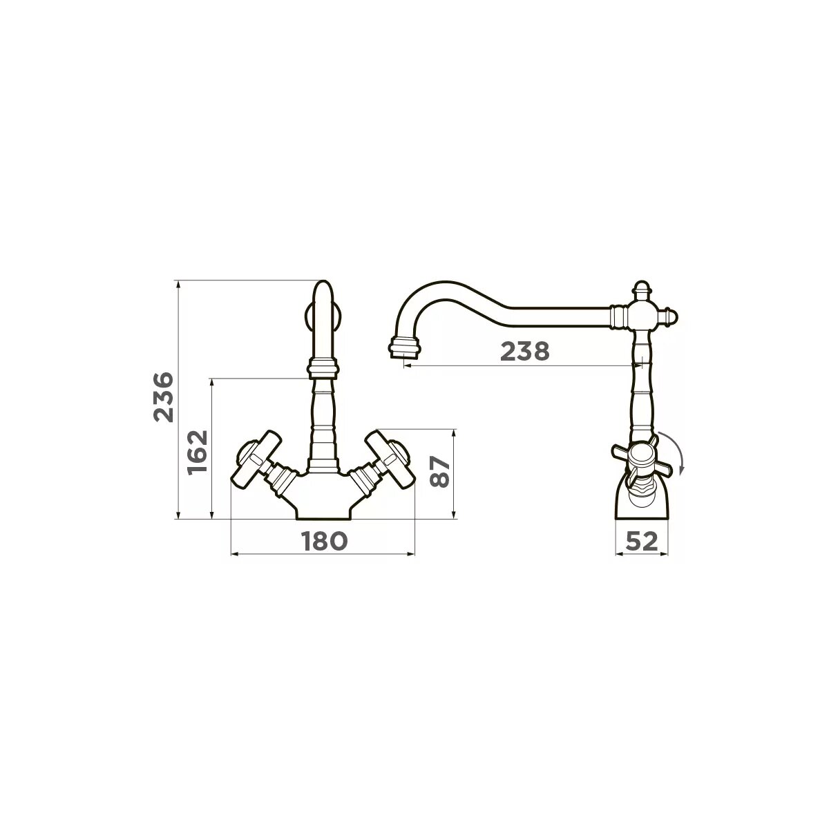 Смеситель для кухни OMOIKIRI Tokigawa-AB классический / с вентилями / античная латунь
