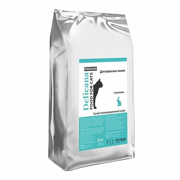 DELICANA сухой корм для взрослых кошек, кролик 8кг.
