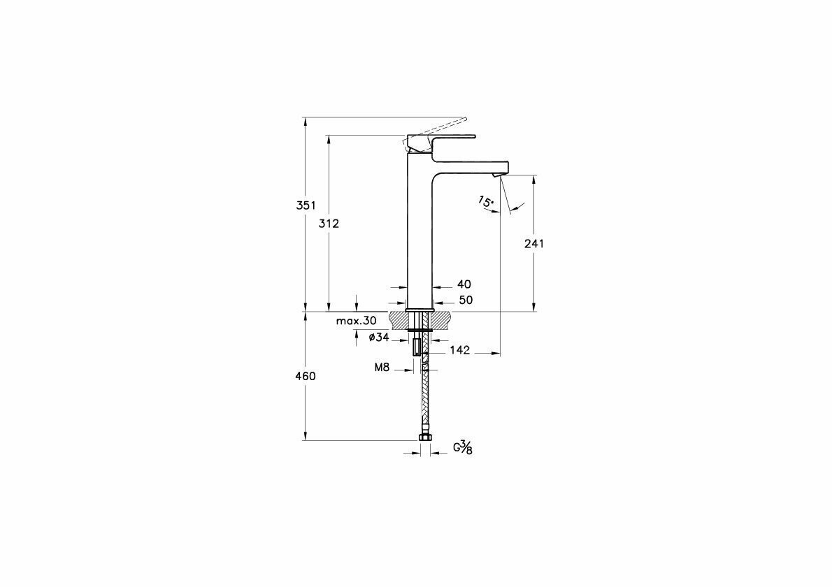 Смеситель для раковины Vitra Q-Line однозахватный, высокий излив 241мм, цвет: хром A40798EXP