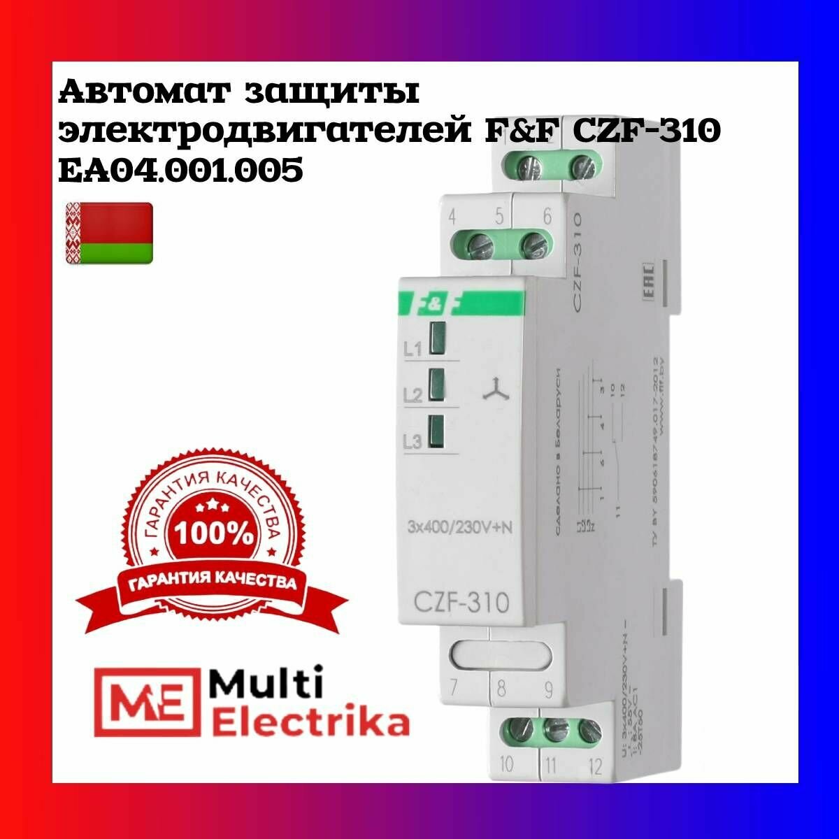 Автомат защиты электродвигателей F&f CZF-310 асимметрия 55 В, минимальное напряжение 160 В, задержка отключения 3-5 с, контакт 1NO/NC, EA04.001.005