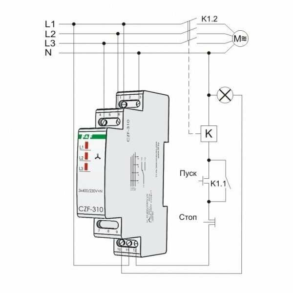 Автомат защиты электродвигателей F&F CZF-310 асимметрия 55 В, минимальное напряжение 160 В, задержка отключения 3-5 с, контакт 1NO/NC