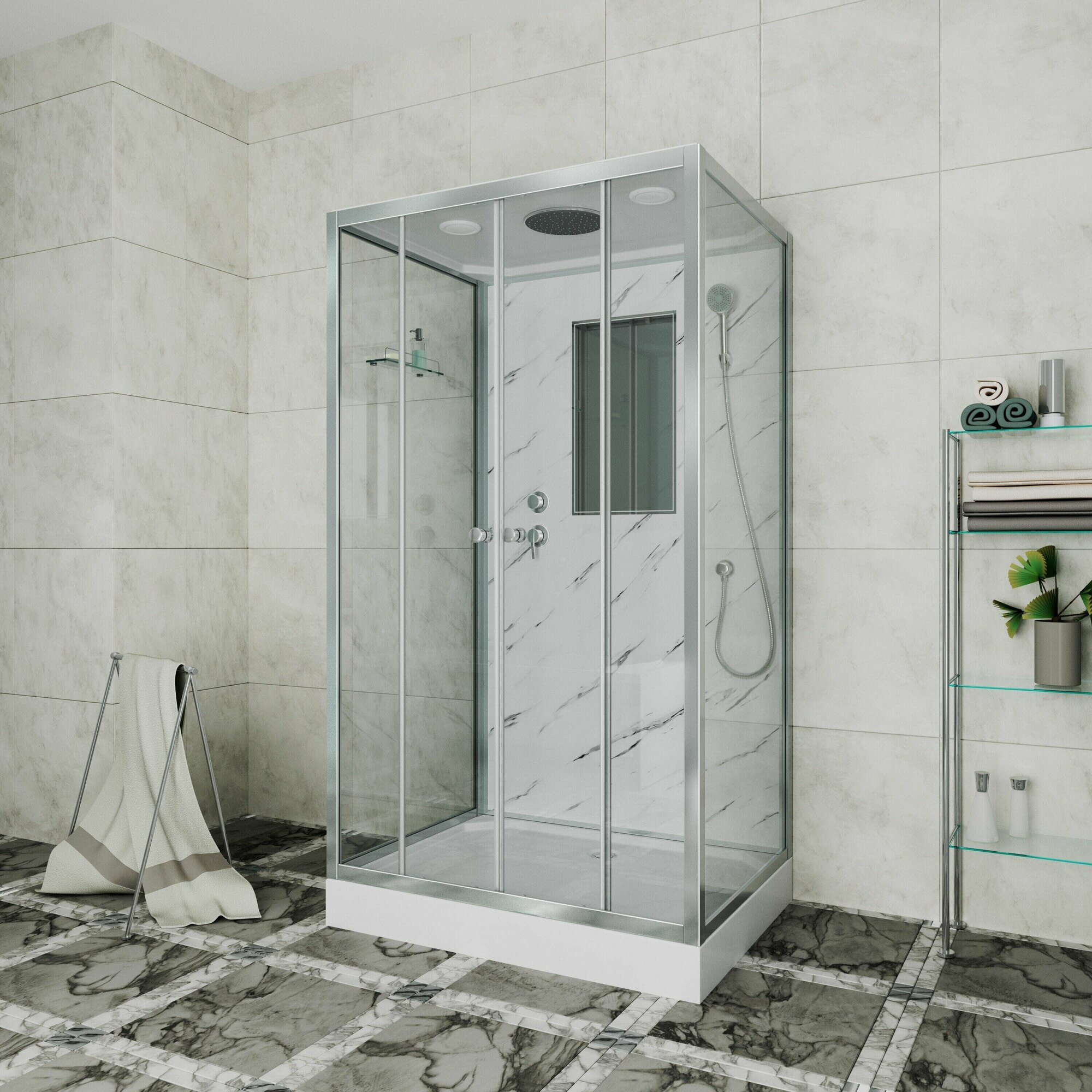 Душевая кабина Niagara NG-7772QM (1200x900х2100) низкий поддон стенки мрамор