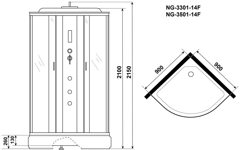 Душевая кабина Niagara NG-3501-14F 90х90 см, с тонированными стеклами