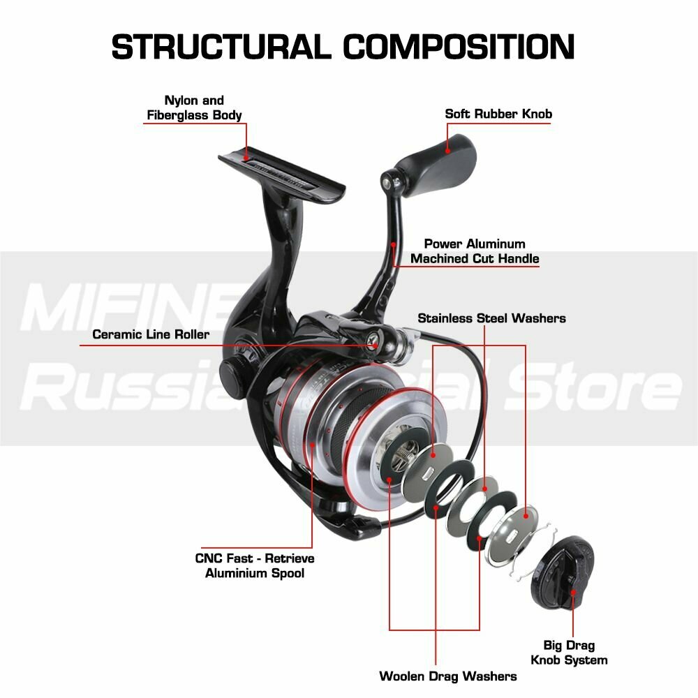 Купить Катушка рыболовная с металлической шпулей MIFINE BLACK TENA 1000F, 5+1 подшипник, для спиннинга, для джига, форелевая, болонская