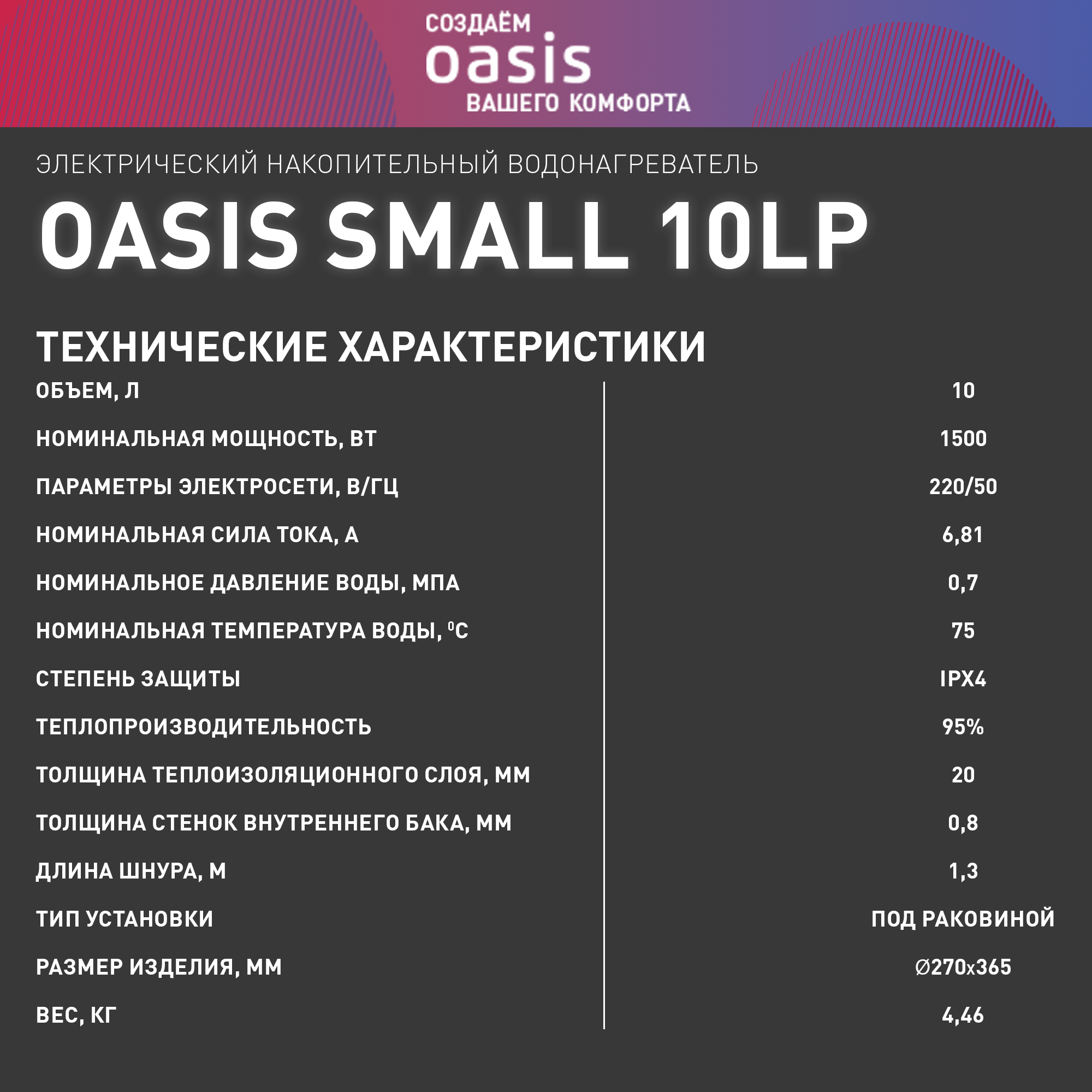 Электрический накопительный водонагреватель OASIS 10 LP под раковиной