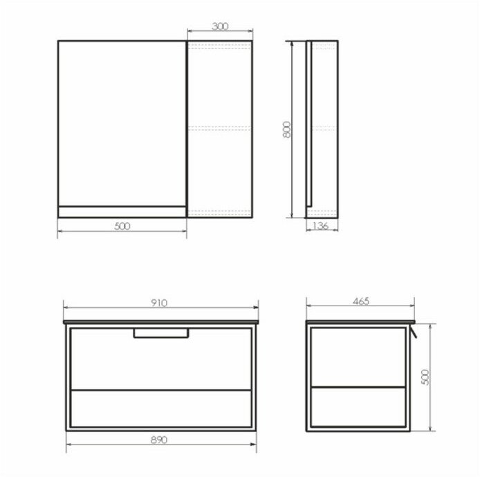 | Комплектация | 1 ящик, 1 ручка, ниша открытого хранения, раковина Quadro 90 |