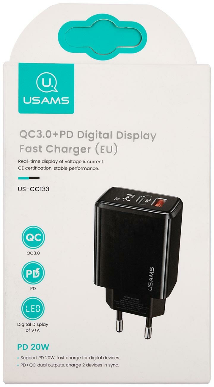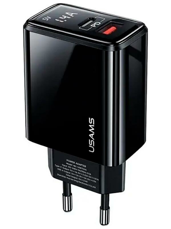 Сетевое зарядное устройство USAMS - (Модель - US-CC133 T40) QC3.0 + PD, Digital Display Fast Charger, черный (CC133TC01) интересное: