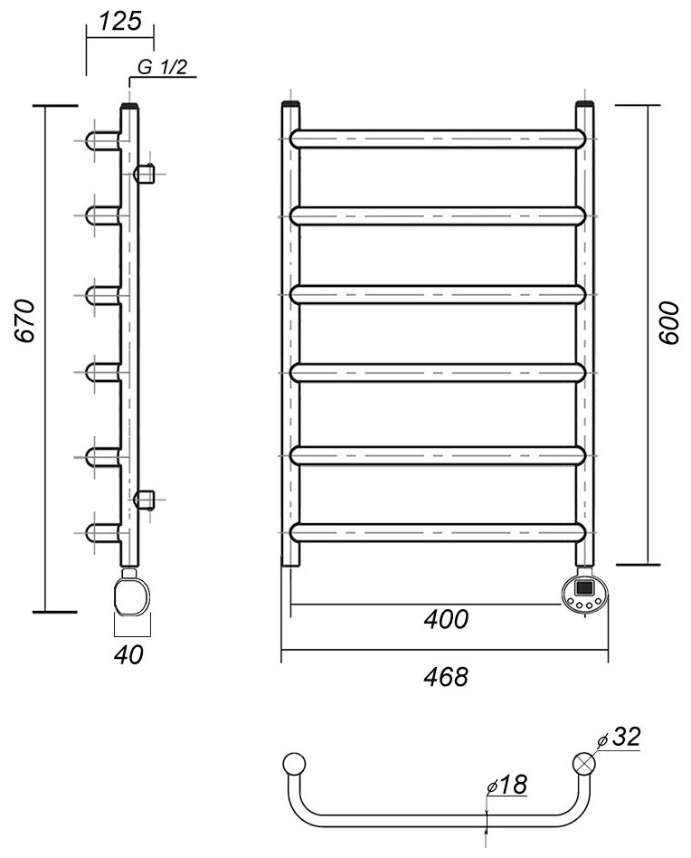 | Дополнительная информация | полотенцесушитель с ТЭНом в сборе 1 шт.,стойка крепления 4 шт.,кран Маевского - 1 шт.,заглушка - 1 шт.,паспорт/инструкция |