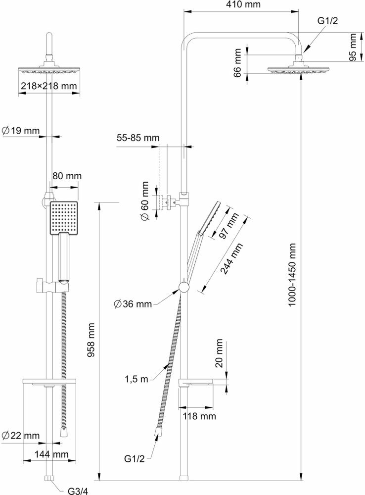 | Особенности | держатель душевой лейки / регулируемый верхний душ |