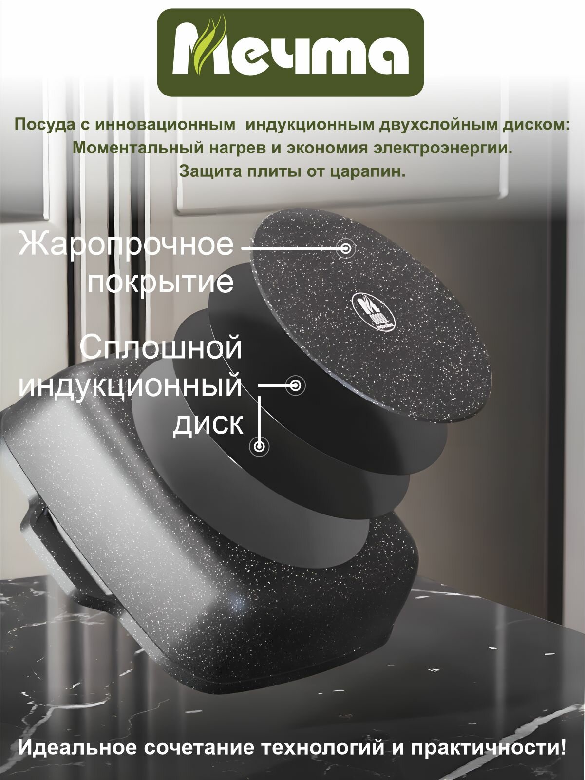 Мечта Жаровня квадратная индукционная 26х26 см АП Гранит star Induction Pro 38803И