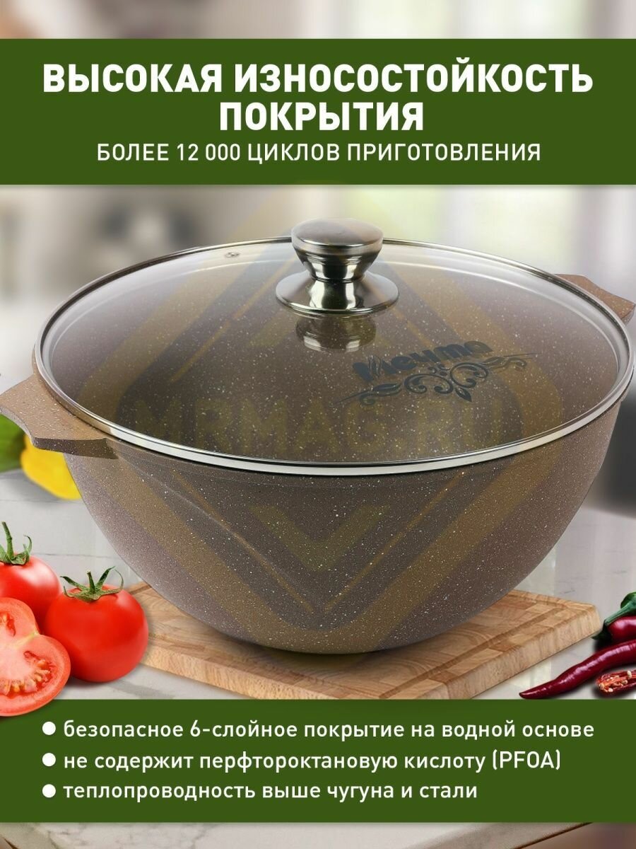 Казан для плова 10л со стеклянной крышкой АП Premium mokko арт 511902 (3) .