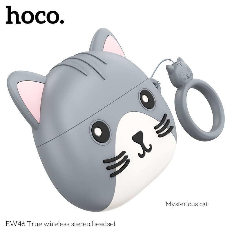 Беспроводные TWS-наушники Hoco EW46 в чехле "котик", серые