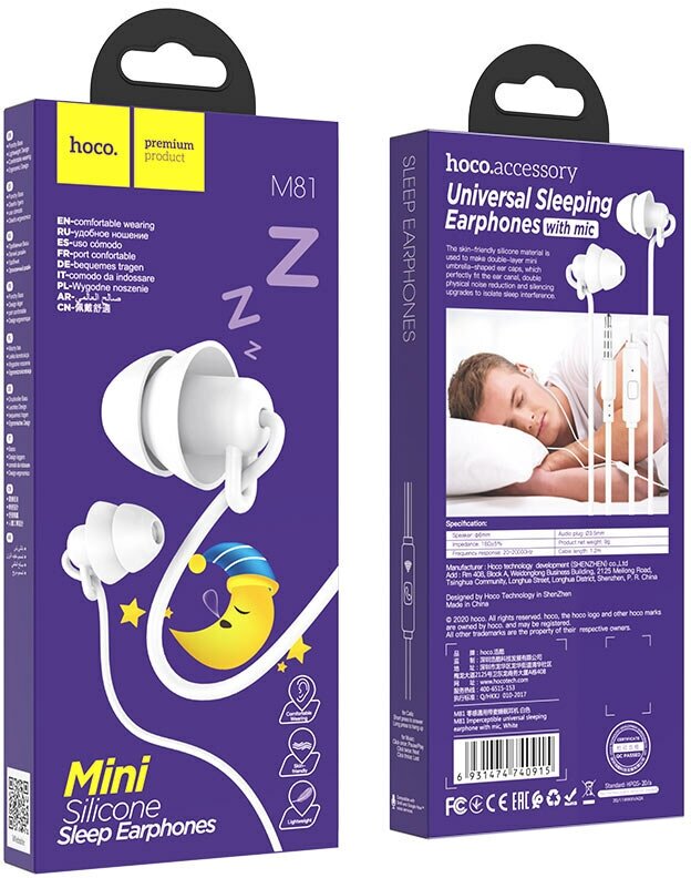 Купить Наушники M81 Imperceptible universal sleeping earphone, HOCO, вакуумные с микрофоном, белые