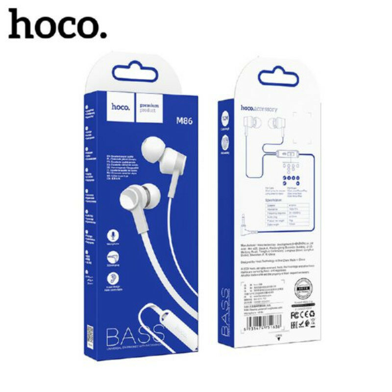 Наушники Hoco M86, проводные, вакуумные, микрофон, Jack 3.5 мм, 1.2 м, белые