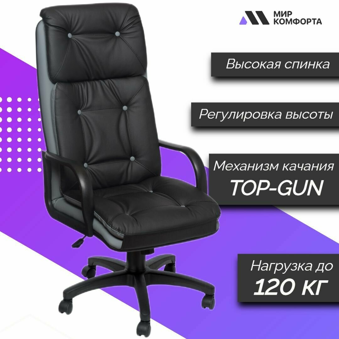 Кресло компьютерное, кресло руководителя, кресло офисное The World of Comfort Надир-1 черный/серый, обивка: искусственная кожа, крестовина пластик
