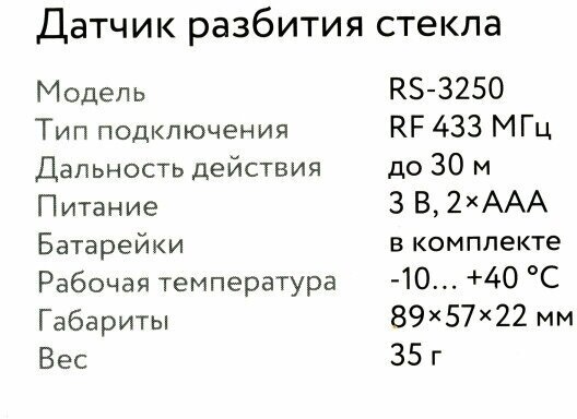 Датчик разбития стекла RUBETEK, RS-3250 интересное: