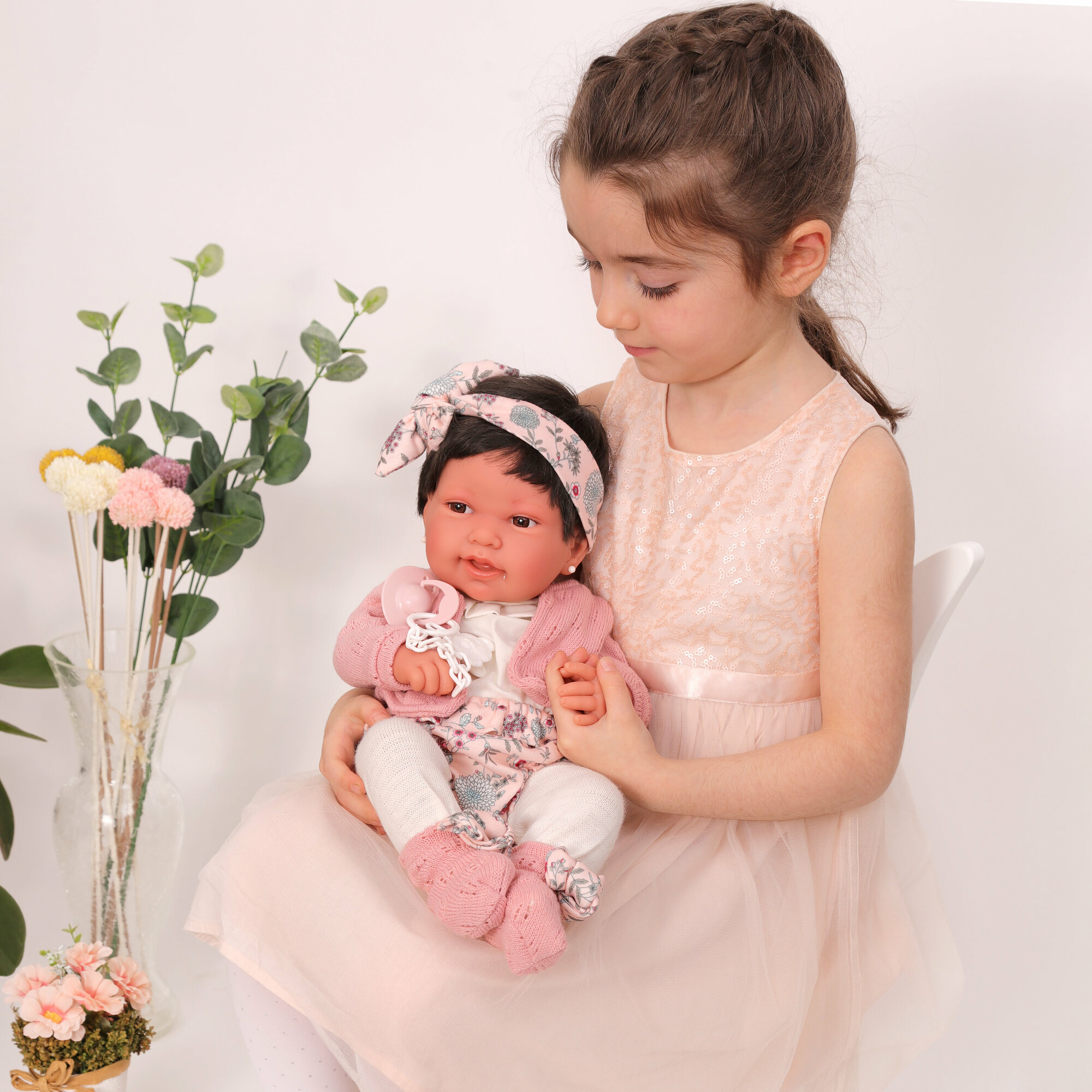 Кукла пупс виниловая Antonio Juan 50036 Беатриц в розовом, 42 см, испанские куклы, подарок на день рождения девочке, подарок дочке