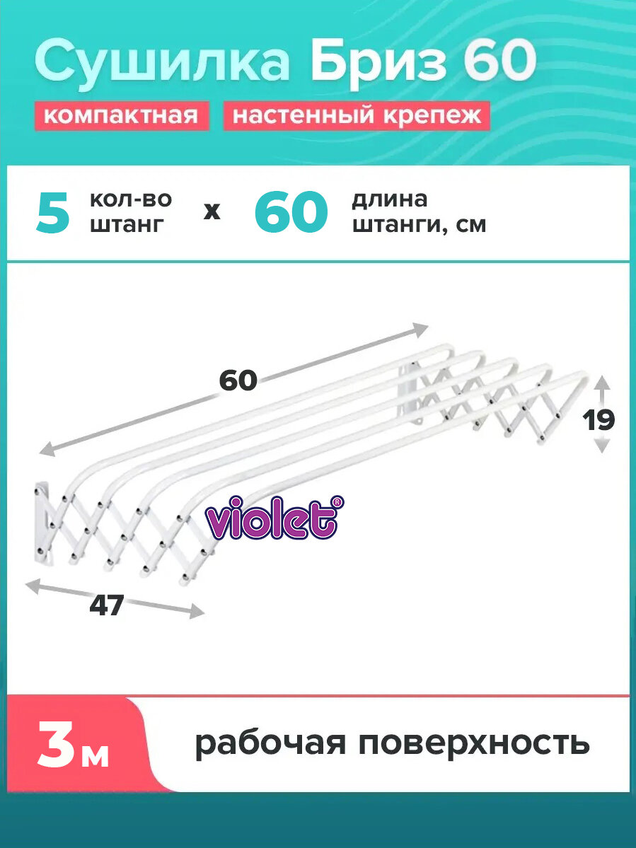 Violet Сушилка настенная раздвижная Бриз 3м 3203