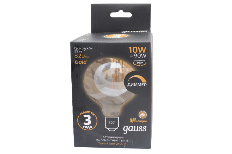 Gauss Лампа Filament G125 10W 820lm 2400К Е27 golden диммируемая LED 120 158802010-D