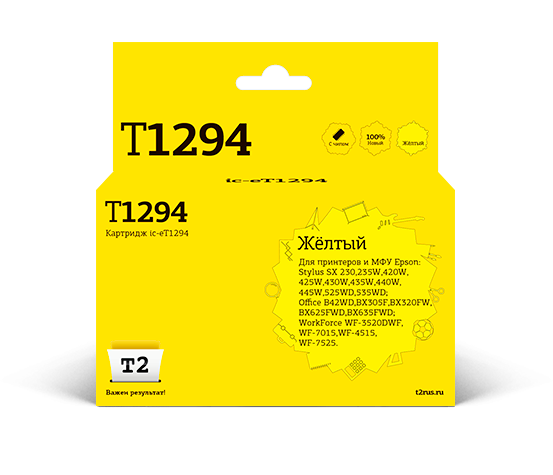 Купить T2 Расходные материалы C13T12944010 Картридж IC-ET1294 для EPSON Stylus SX420W SX425W SX525WD Office B42WD BX305F BX320FW BX625FWD желтый с чипом