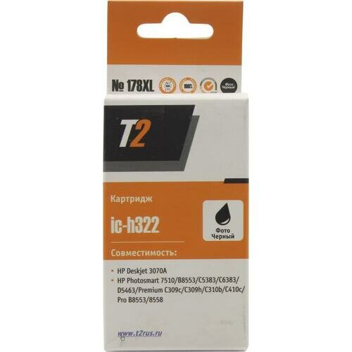 Картридж T2 ic-h322 (№178XL) Photo Black для hp DJ 3070A, PS 5510/5515/6510/7510/B010b/B109c/B110a